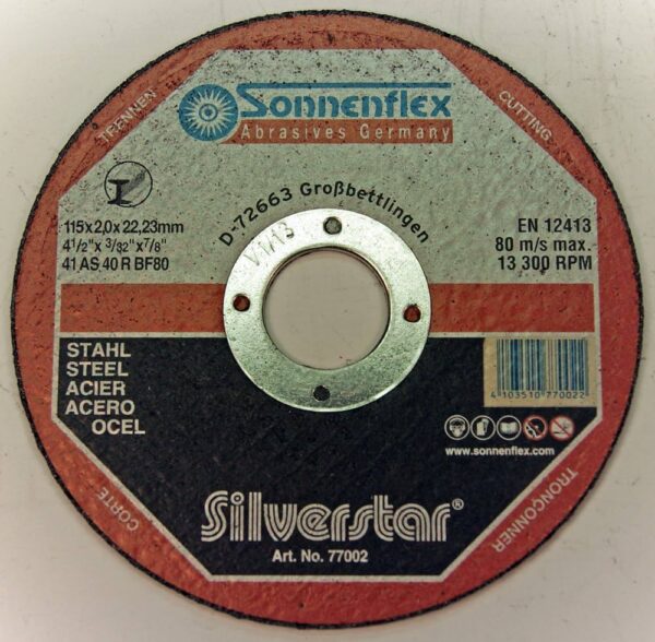 Çelik için Sonnenflex Silverstar kesme diskleri ambalaj içeriği 1/115 x 2 x 22,23 mm, AS 40 R BF